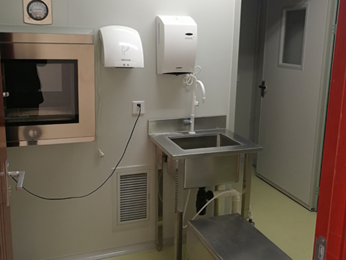(4)無菌室容積小而嚴密,使用一段時間后,室內溫度很高,故應設置通氣窗。通氣窗應設在內室進門處的頂棚上(即離工作臺最遠的位置),最好為雙層結構,外層為百葉窗,內層可用抽板式窗扇。通氣窗可在內室使用后、滅菌前開啟,以流通空氣。有條件可安裝恒溫恒濕機。